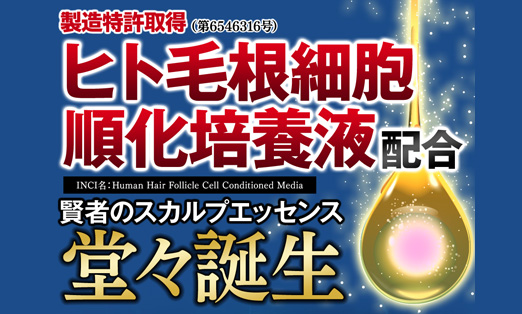 製造特許取得成分「ヒト毛根細胞順化培養液」をはじめとする成分を配合 。