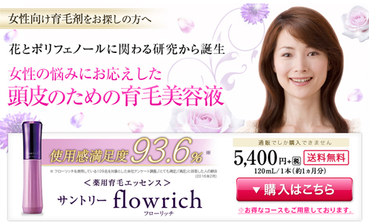 フローリッチはサントリーウェルネスが自信を持っておすすめする女性用育毛剤です。
