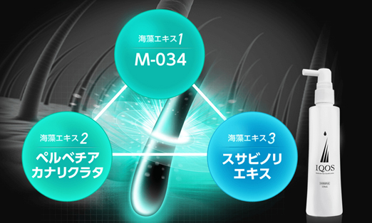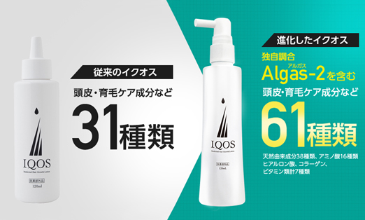 2016年にリニューアルしたイクオス育毛剤。アルガス-2という新成分に加えスサビノリエキス(海藻)という成分も新たに配合。