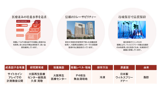 ヒト幹細胞上清液とは、ヒトの脂肪から採取した幹細胞を培養した際に出る液体のことです。この液体には、細胞の再生や増殖を促進する成長因子がたくさん含まれています。成長因子は、髪や頭皮の土台を整えて力強い髪を育てるのに欠かせない成分です。