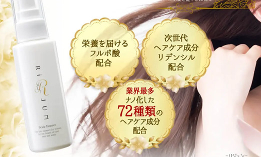 RiJUNは、世界初のナノカプセル化技術を採用した女性向けの育毛剤です。ナノカプセル化技術とは、有効成分をナノサイズのカプセルに包み込むことで、頭皮への浸透力や持続力を高める技術です。RiJUN(リジュン)には、ナノカプセル化された3種類の有効成分が含まれています。