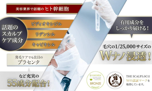 キャピキシルの他、発酵プラセンタエキスやオクタペプチド等のGF(成長因子)をはじめとする41類の成分配合した育毛剤。
