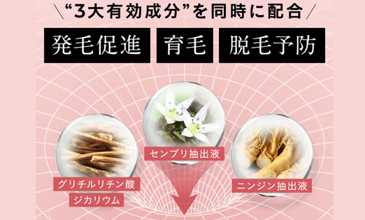 育毛、薄毛、かゆみ、脱毛の予防、毛生促進、発毛促進、ふけ、病後·産後の脱毛、養毛