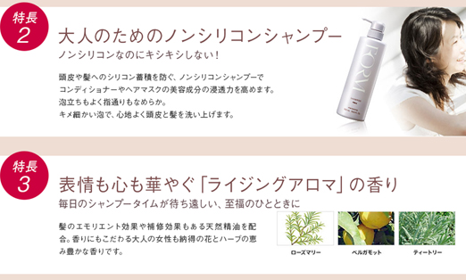 花とハーブが香るライジングアロマの香りと、頭皮に清涼感をもたらすメントールで毎日のシャンプーが楽しくなるはずです。