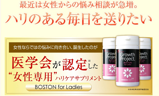 人気の育毛シリーズGrouwth Projectから発売された「 BOSTONレディースサプリメント 」。