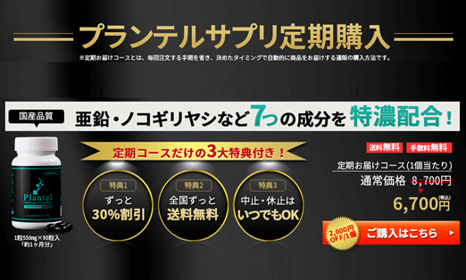 抜け毛が酷くなってきた方や育毛剤だけで実感が出来ない方、日ごろからストレスを感じたり、生活習慣が不規則な方は是非一度プランテルサプリをお試しください!